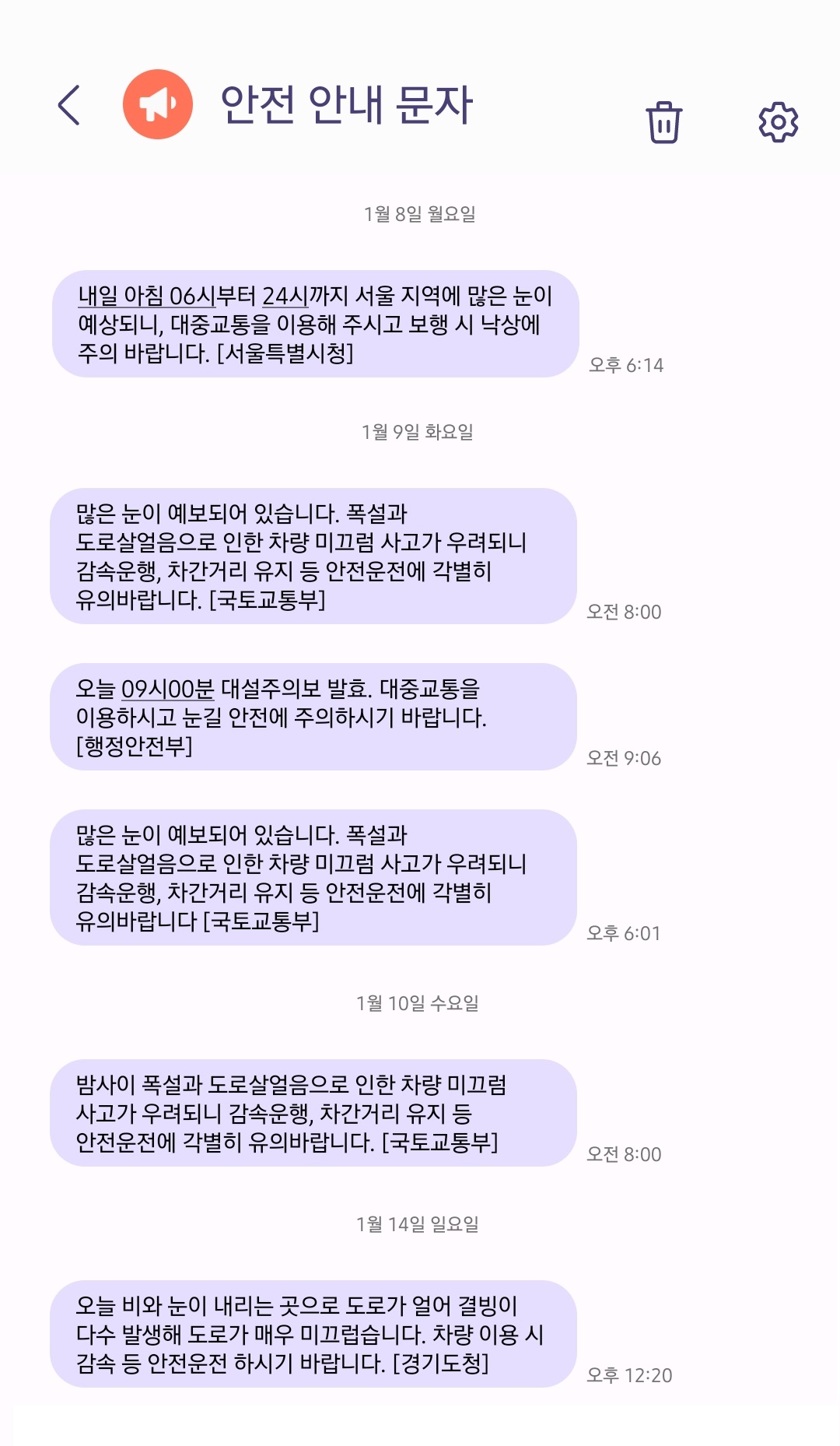 이 결빙 위험 구간 설정은 겨울철에만 활성화된다고 하니 한 번만 설정해 두면 겨울철마다 안내를 받을 수 있으니 티맵 이용자라면 지금 바로 설정해 두세요.